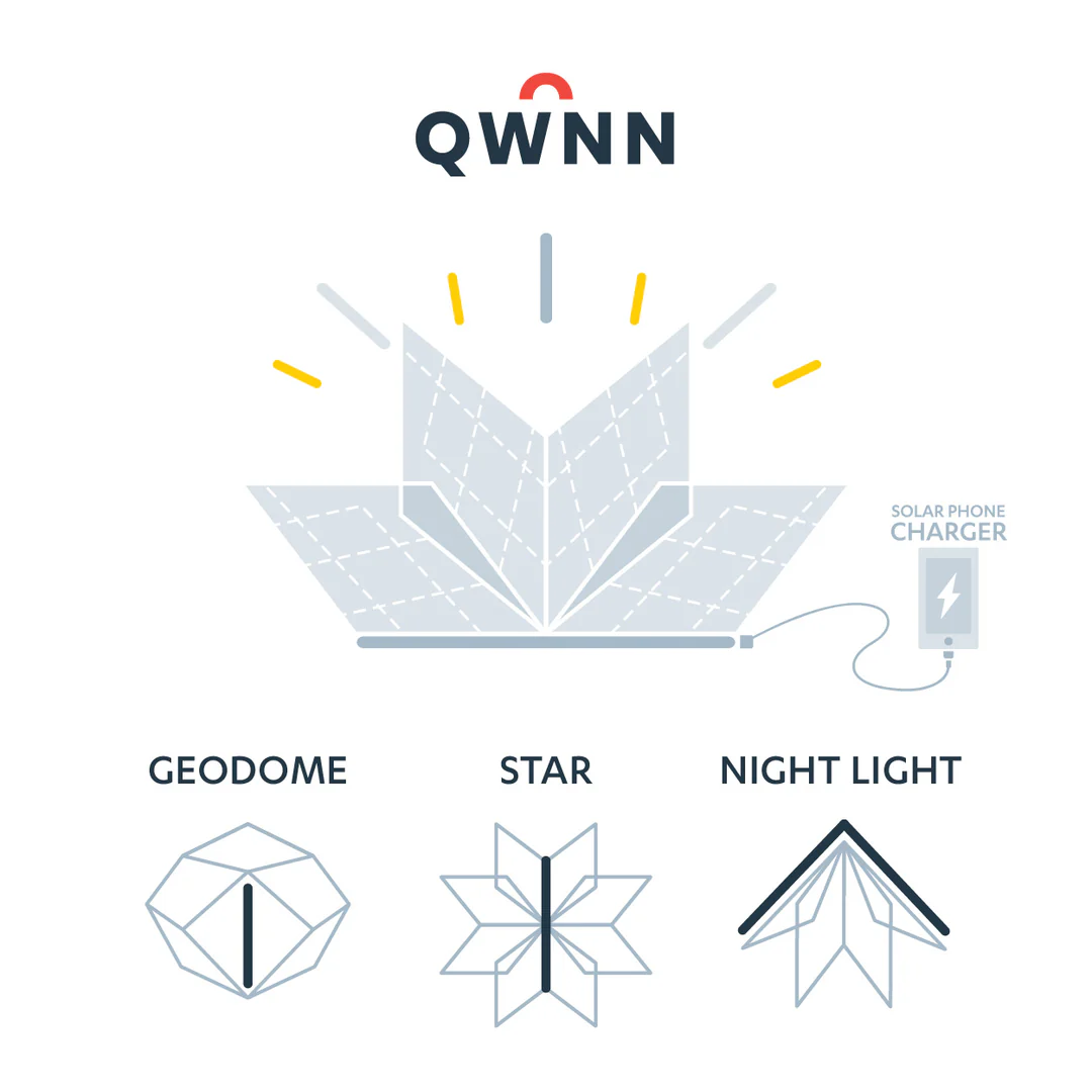 Ambiance matters, and it’s crucial to illuminate it with warm, inviting light. With power outages increasing by 30% each year, staying prepared has never been more important. Enter the QWNN Solar Lantern—our most powerful, versatile solar light. Offering up to 600 lumens, it features a USB charging port and power bank function. The QWNN Origami folds flat like a book and expands into three unique shapes, including a cubic dome with a patented folding design. Made from rugged yet beautiful sailcloth, it casts a stunning spectrum of light. Includes a power bank and micro USB cord.